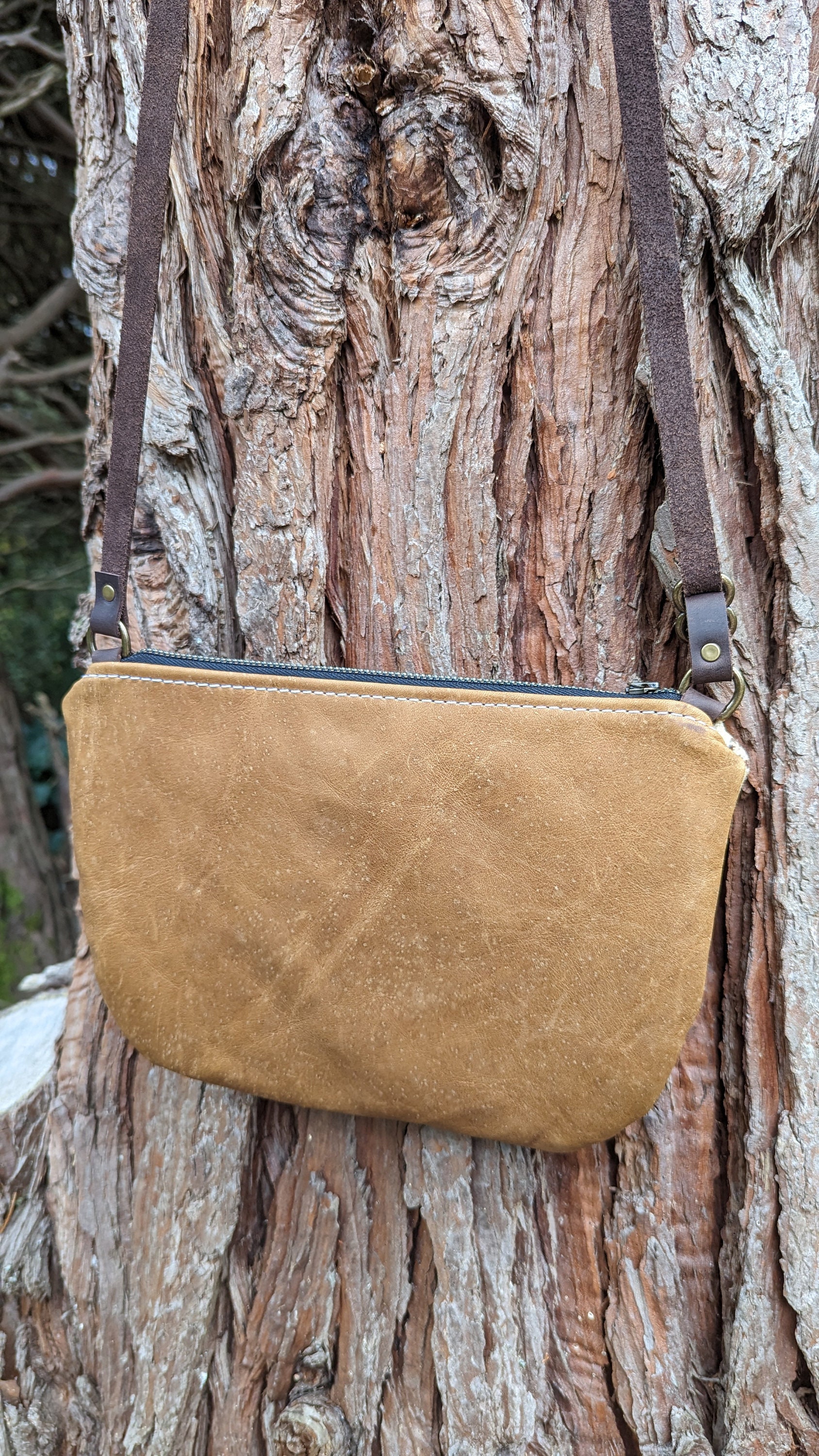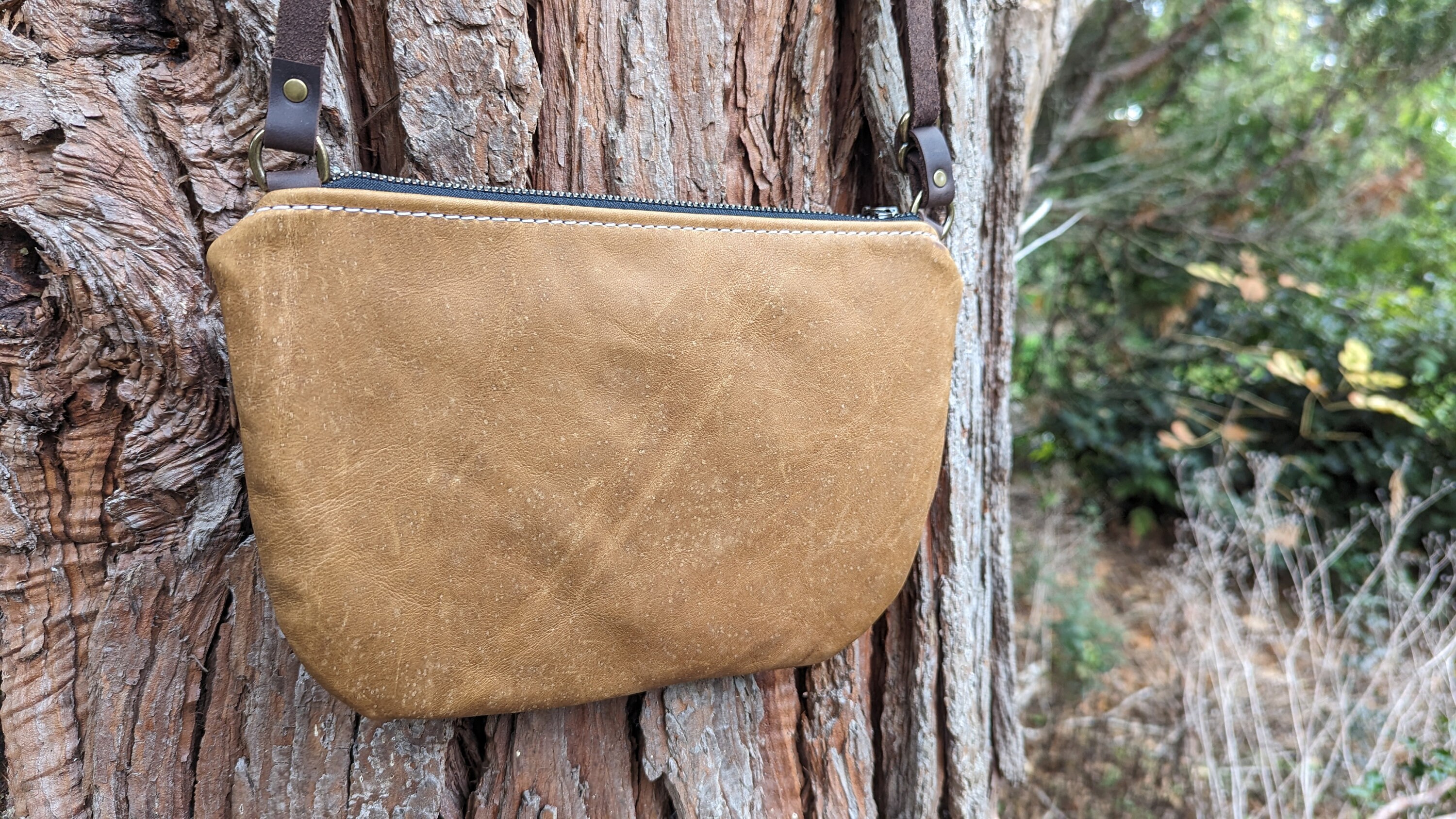 The adjustable shoulder strap adds options to carry this crossbody style or over the shoulder. It is adjustable with antique brass hardware.