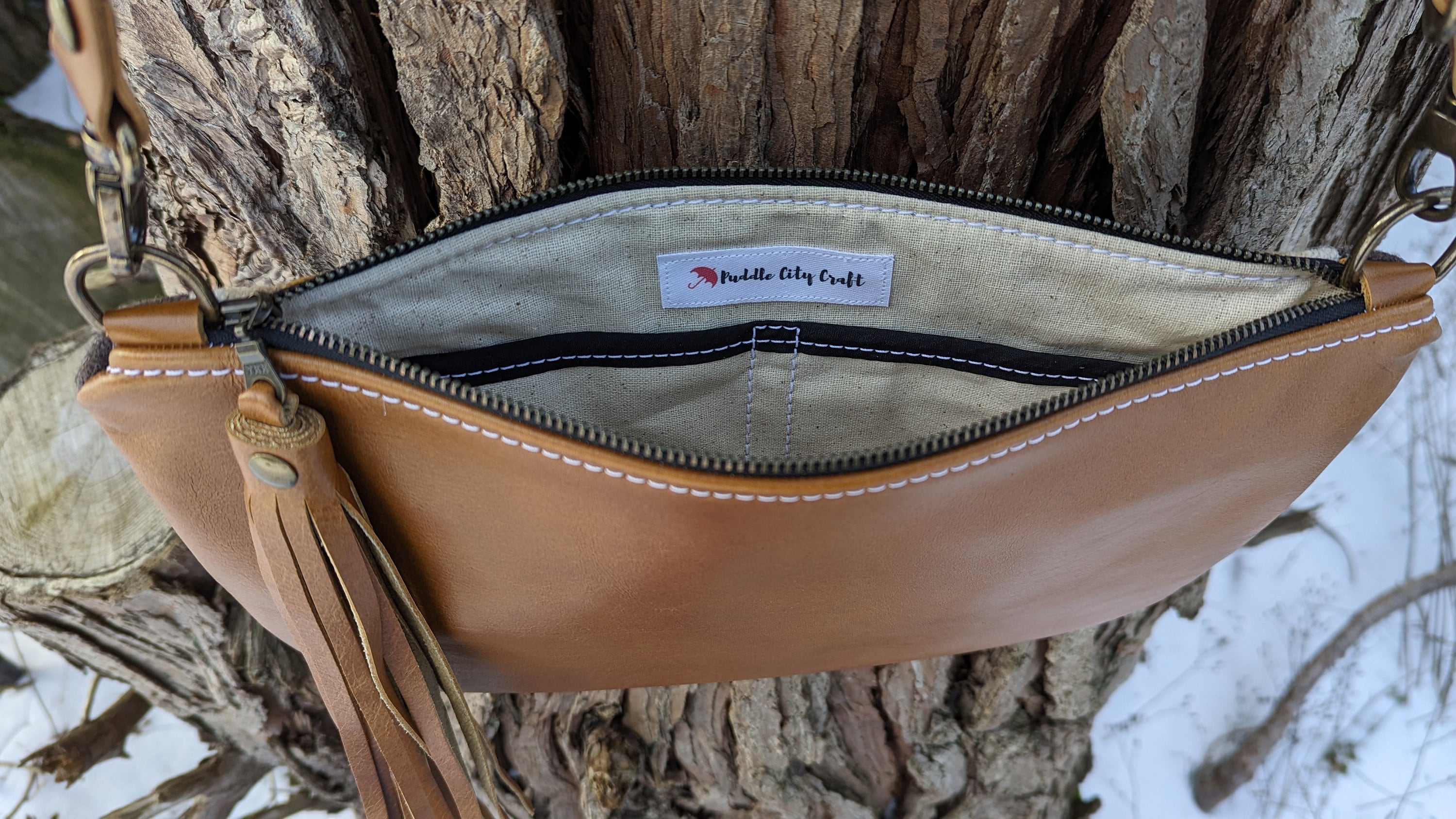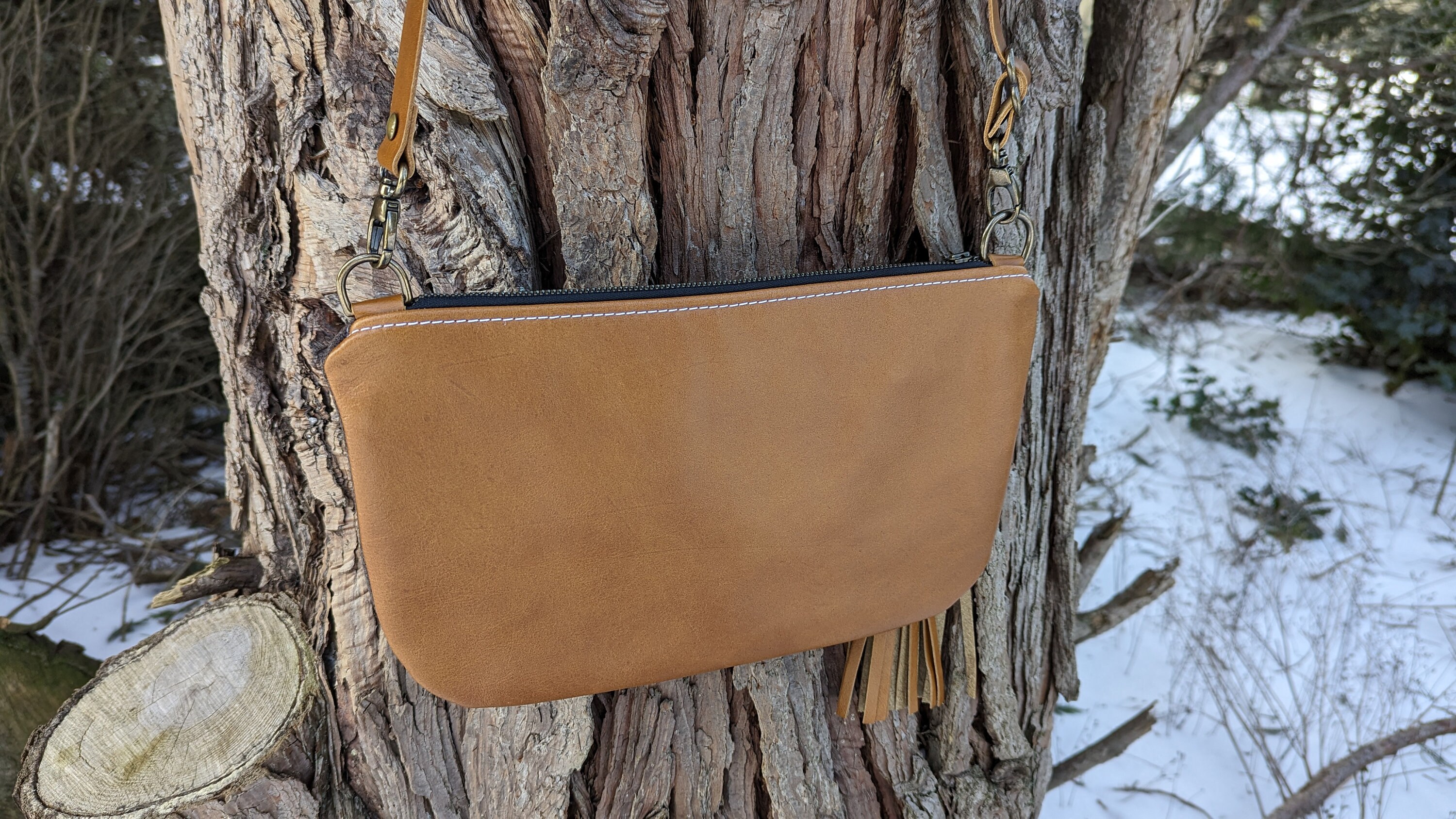 The adjustable shoulder strap adds options to carry this crossbody style or over the shoulder. It is adjustable with nickel plate hardware.
