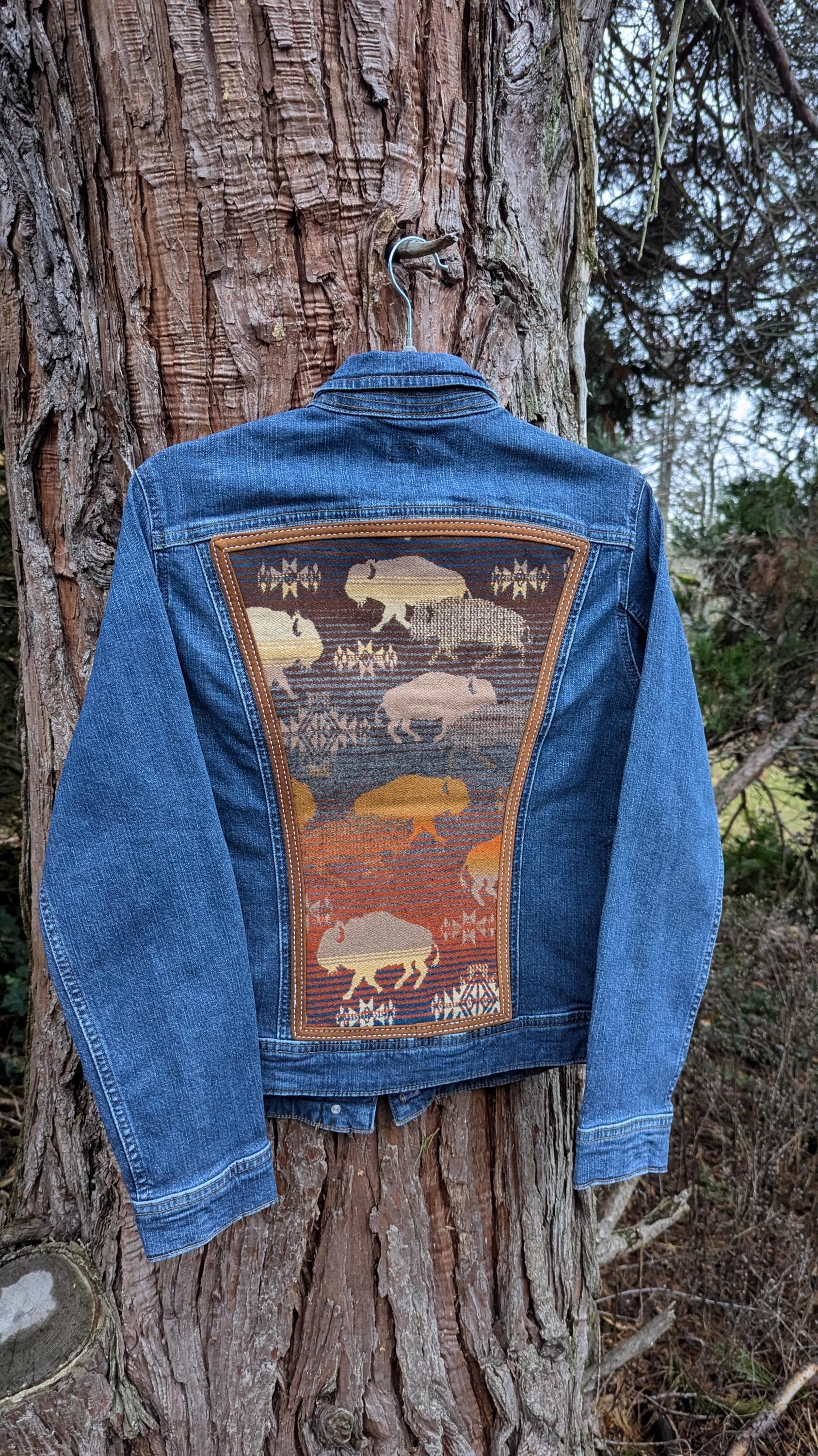 + New Lee Rider jean jacket base with Pendleton® wool insert on the back of jacket