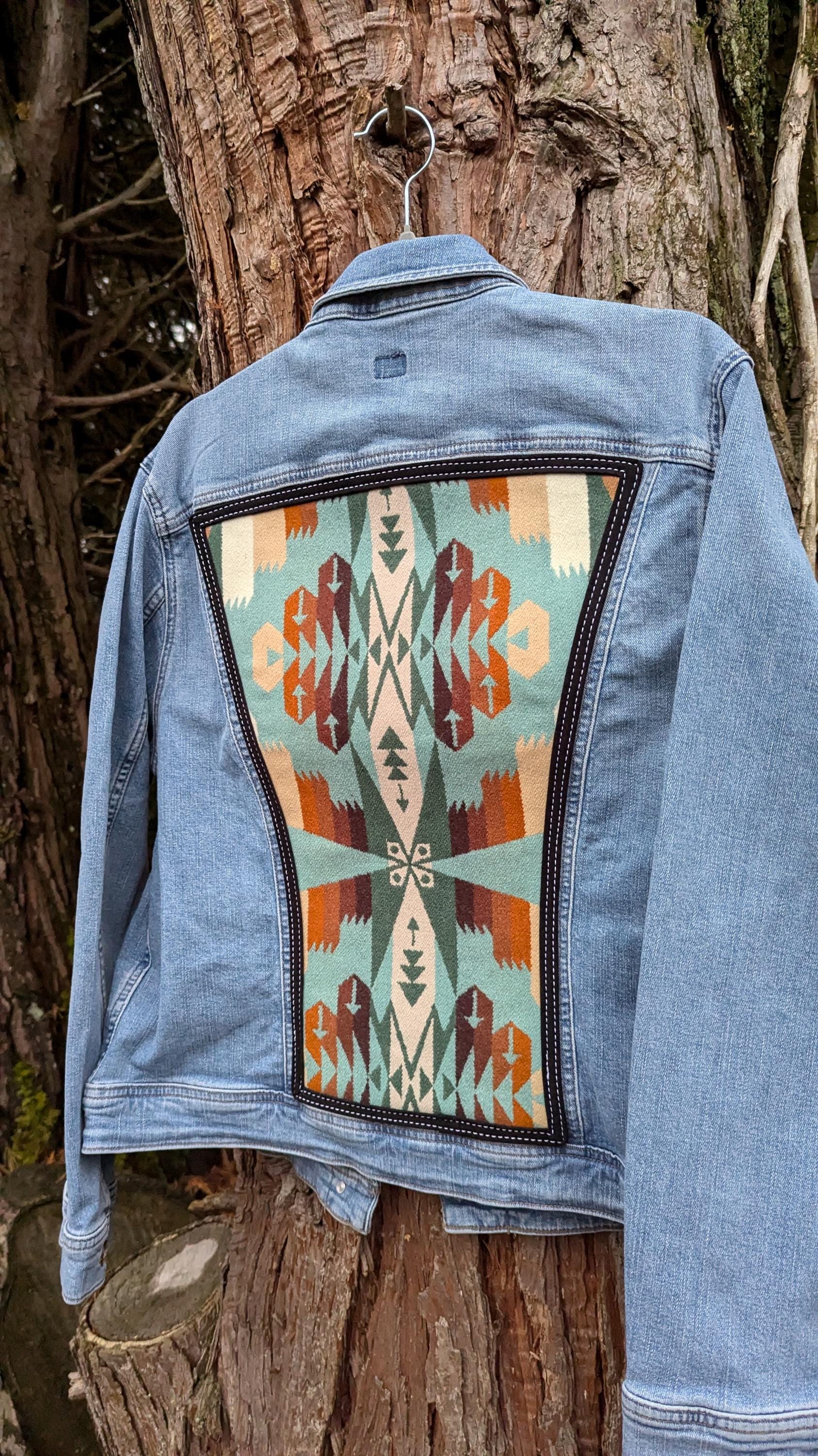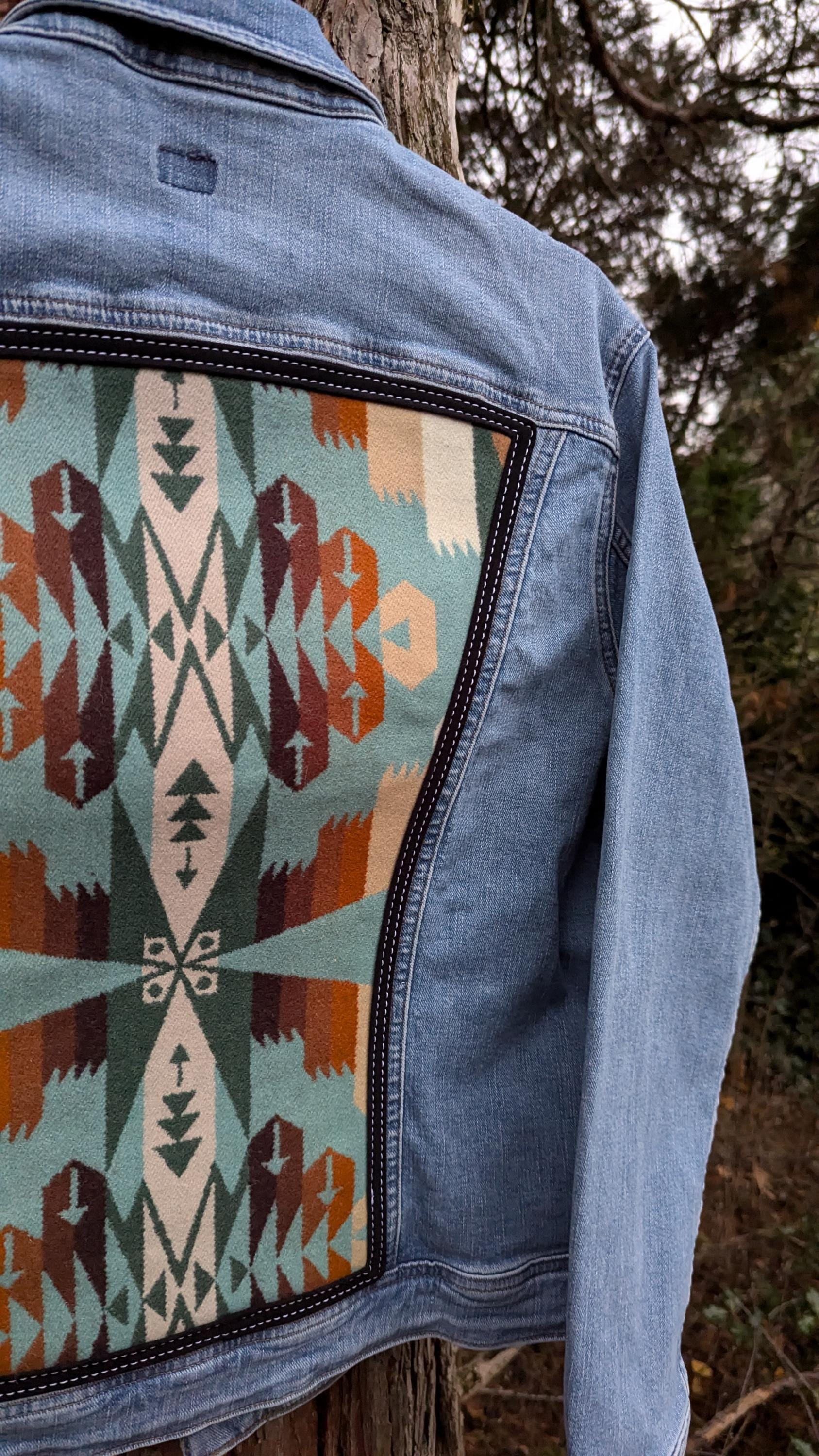 + New Lee Rider jean jacket base with Pendleton® wool insert on the back of jacket
