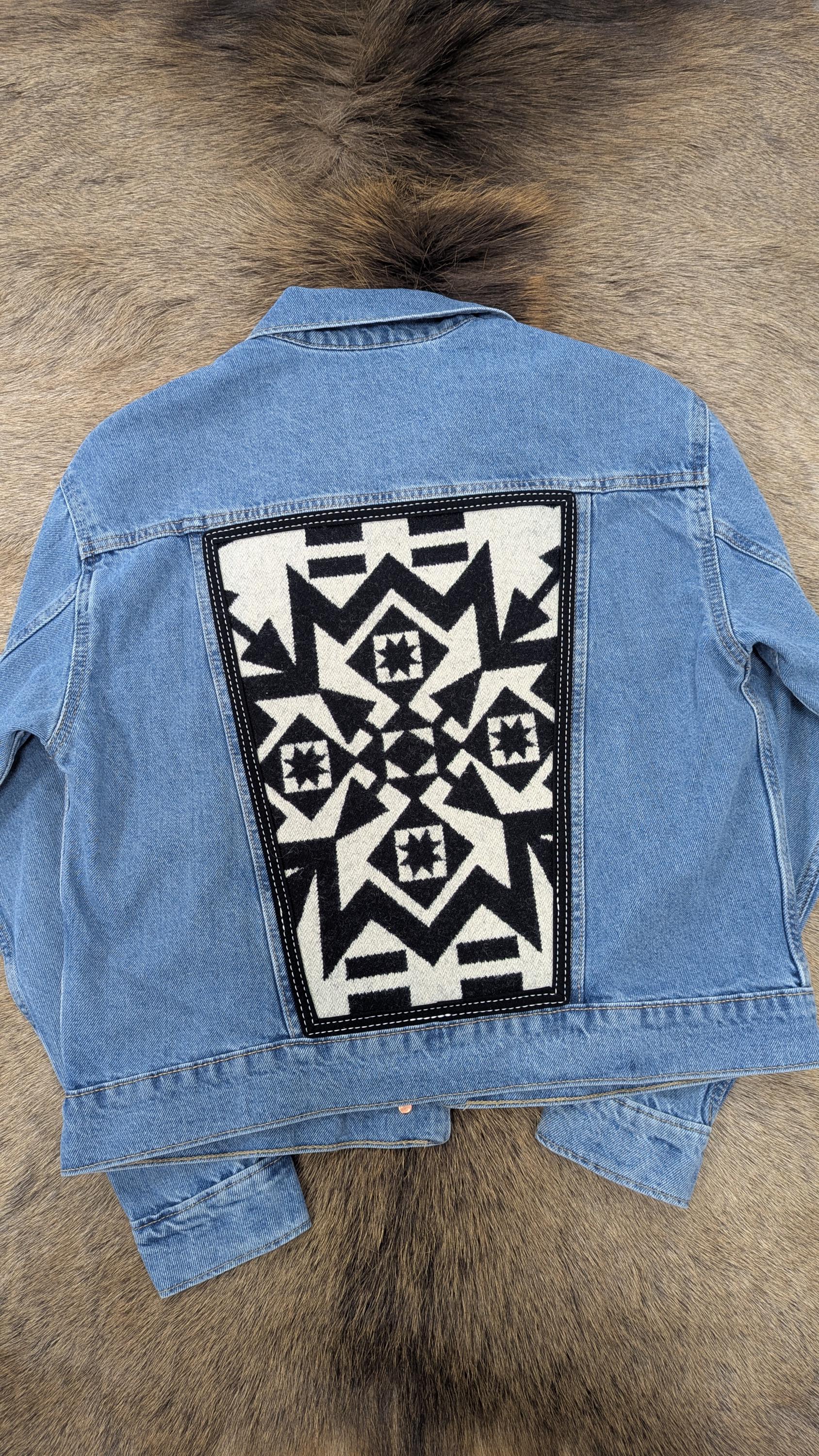 + New Old Navy jean jacket base with black and white Pendleton® wool insert on the back of jacket