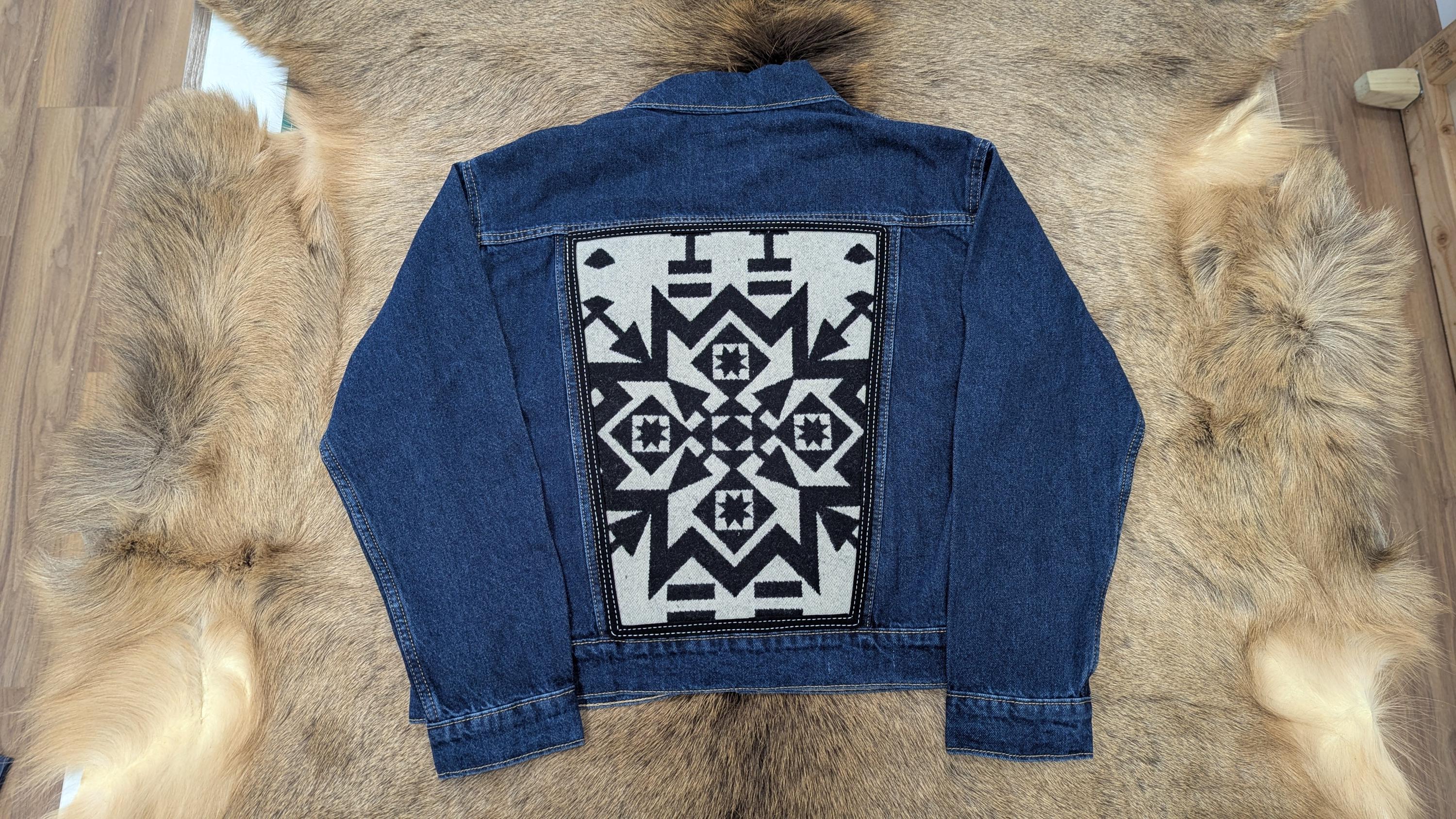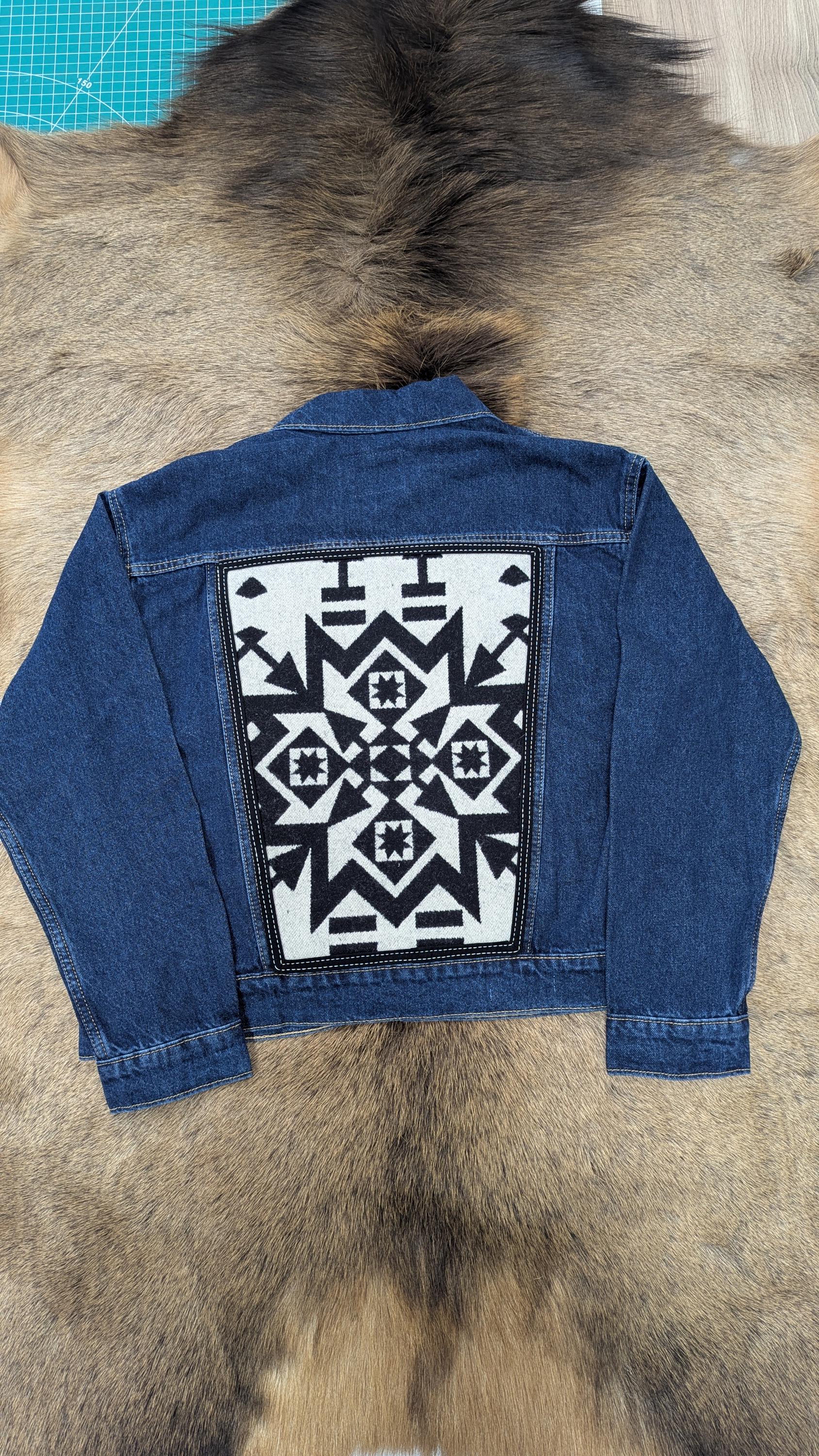 + New Old Navy jean jacket base with black and white Pendleton® wool insert on the back of jacket