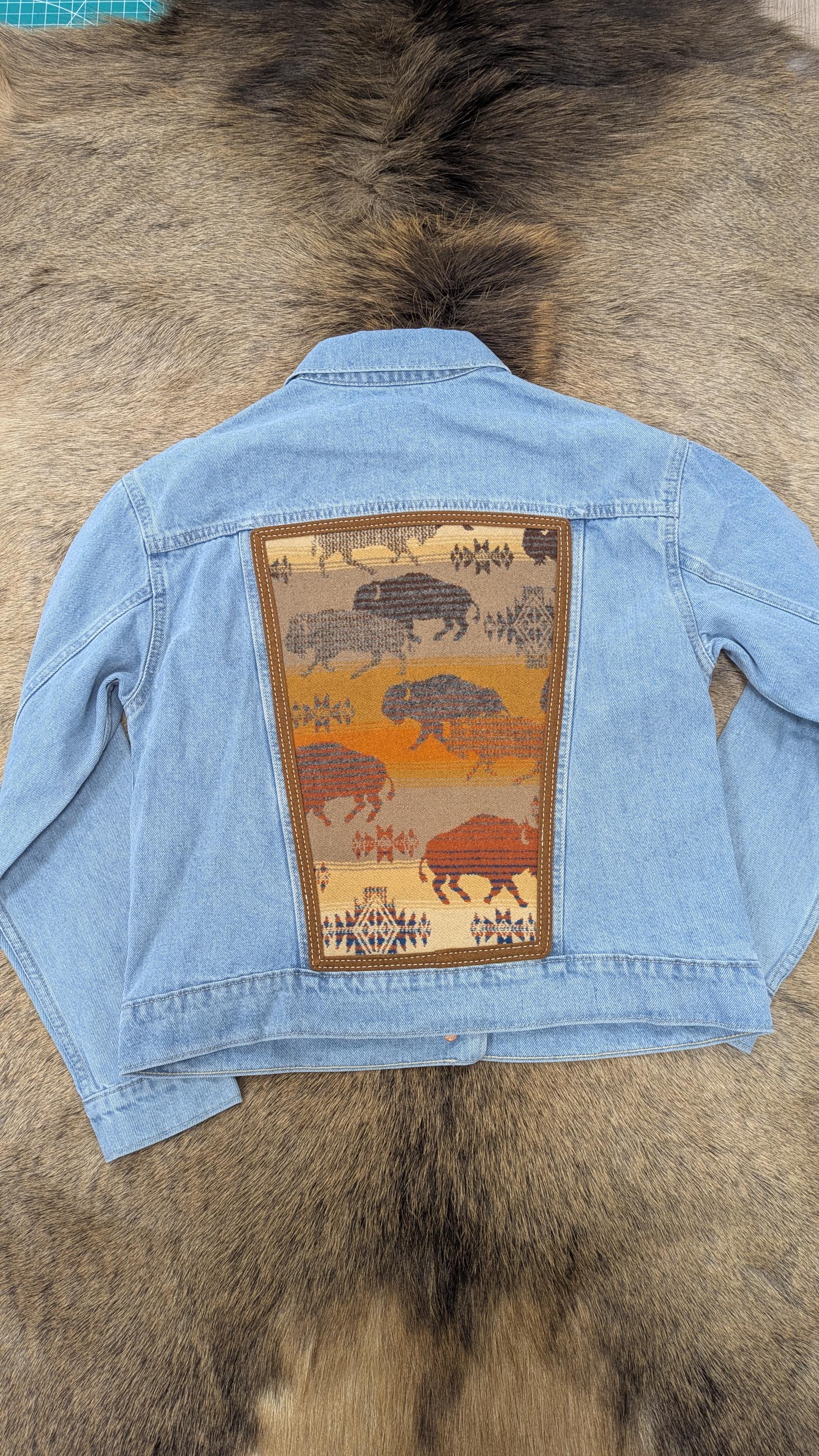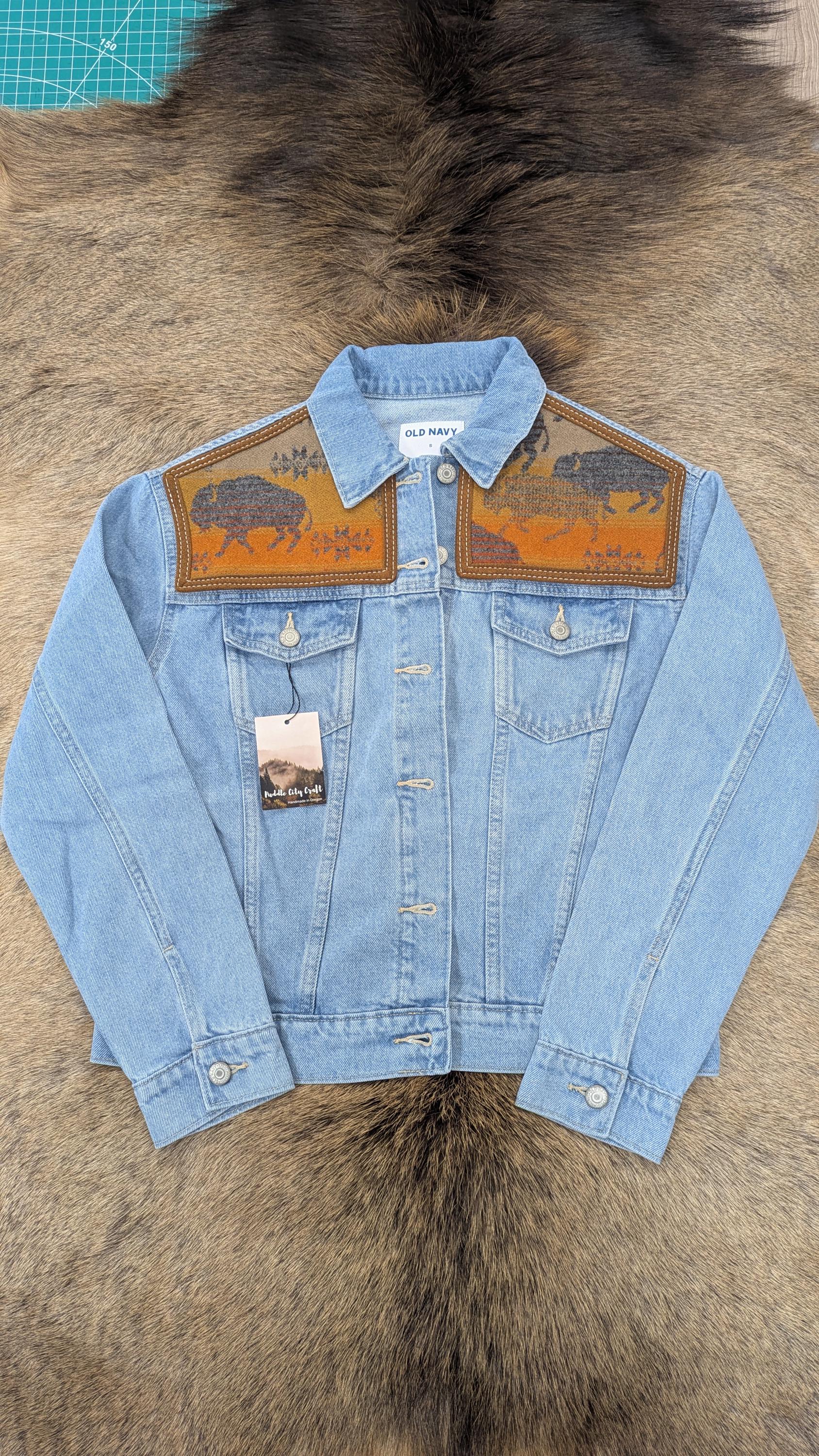 + New Old Navy jean jacket base with Land of the Buffalo Pendleton® wool insert on the back AND front of jacket