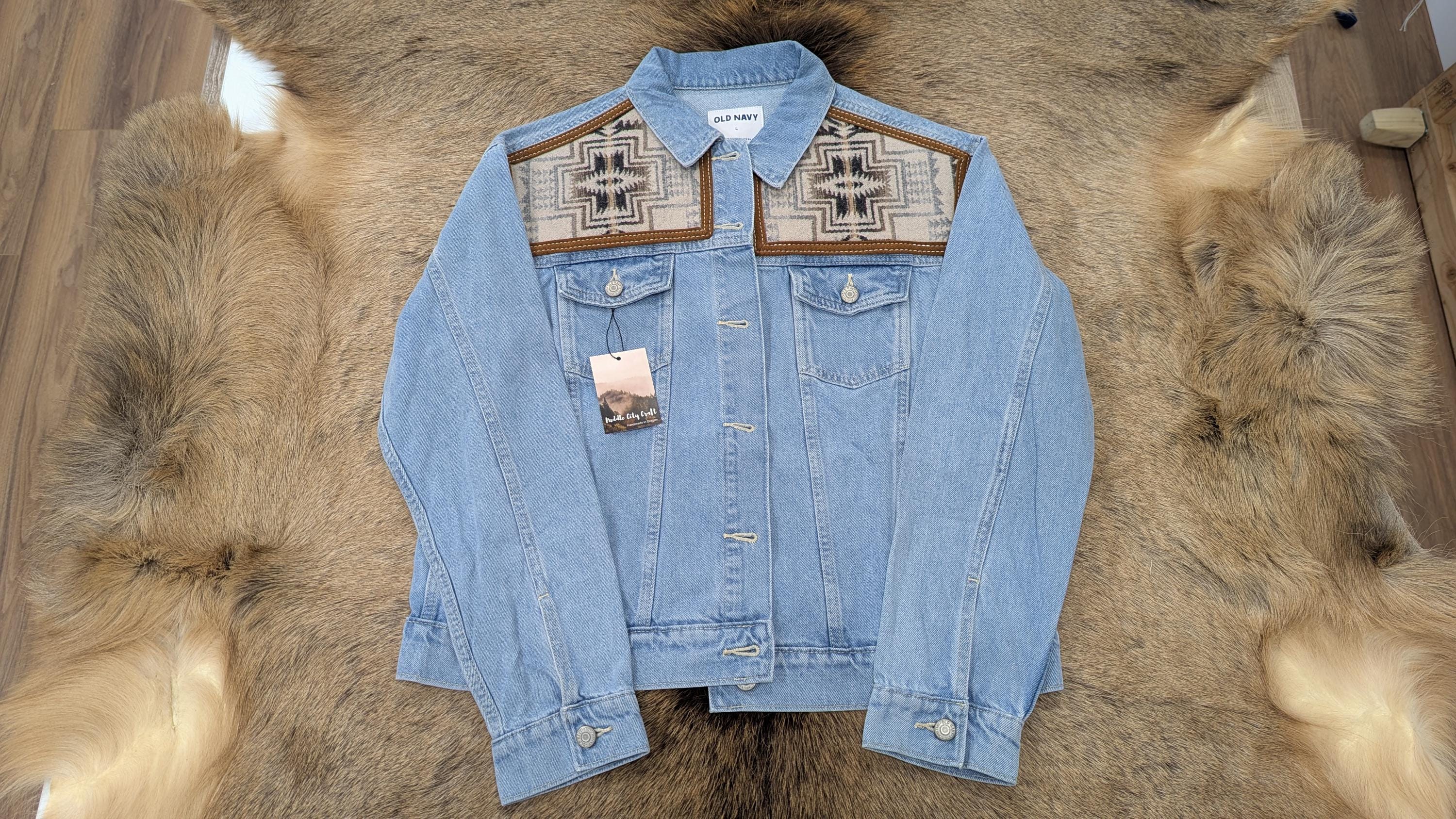 + New Old Navy jean jacket base with Pendleton® wool insert on the back AND front of jacket