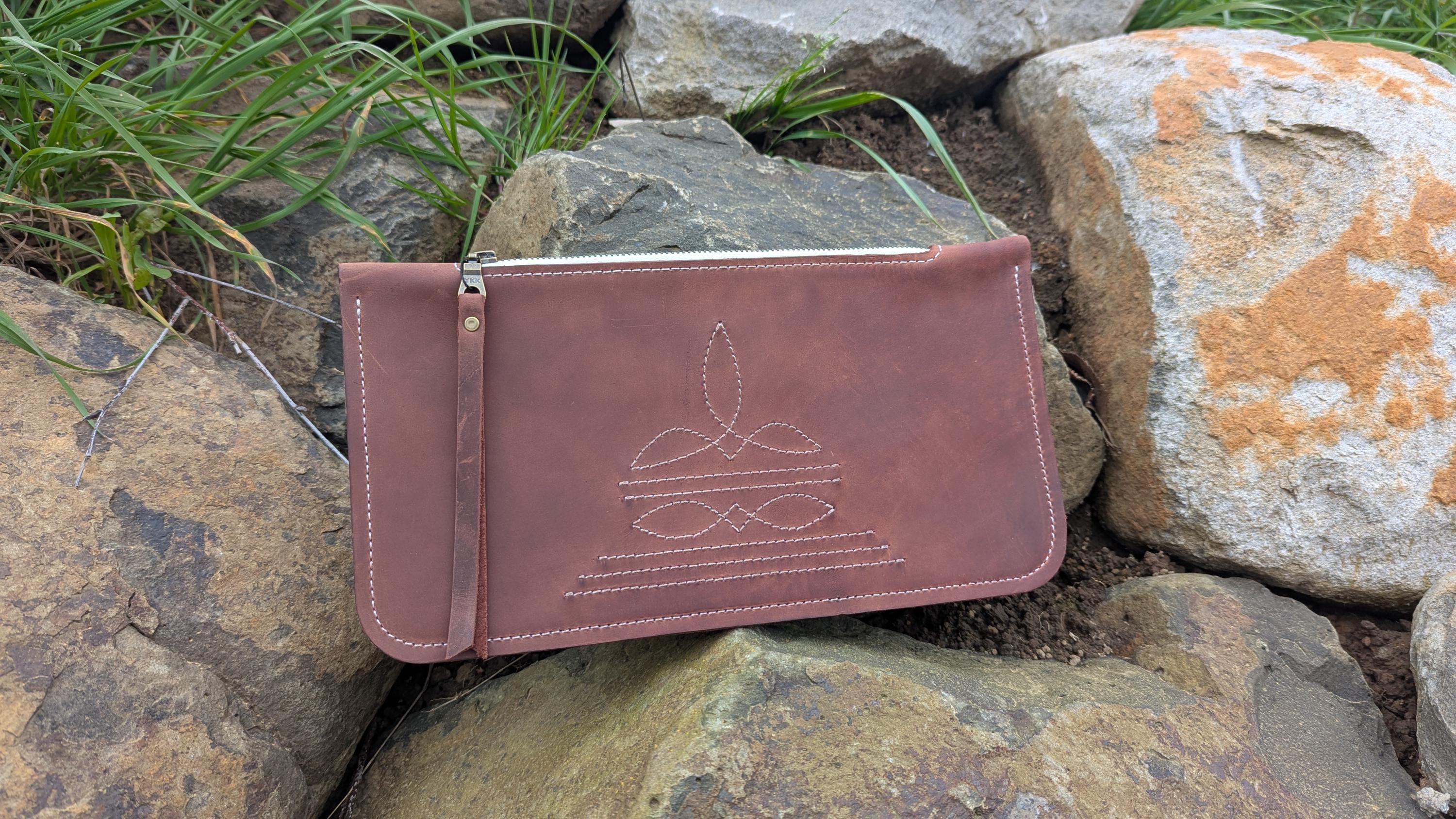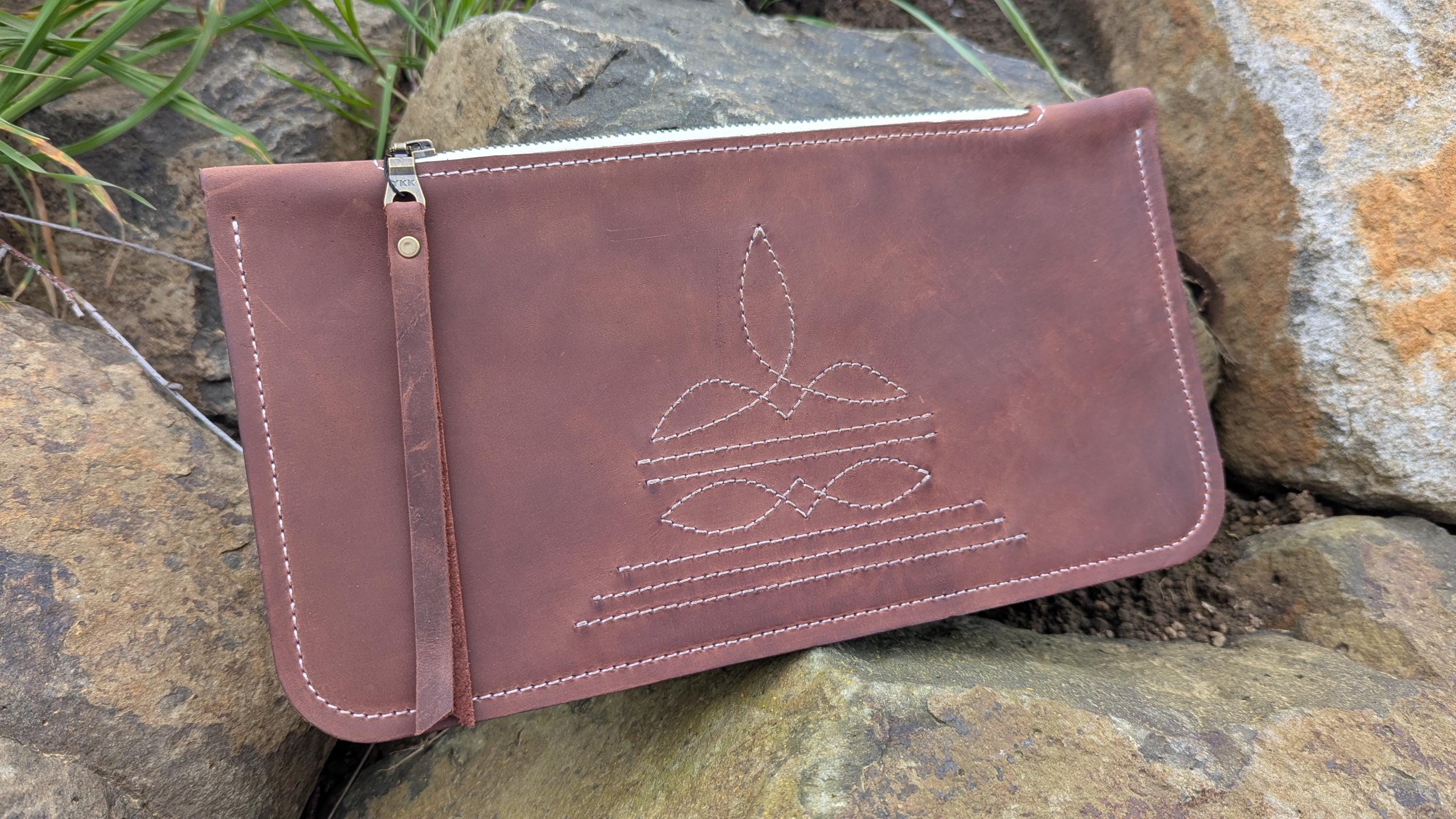 Western Stitch Clutch, Boot Stitch Bag, red-brown leather, Handbag