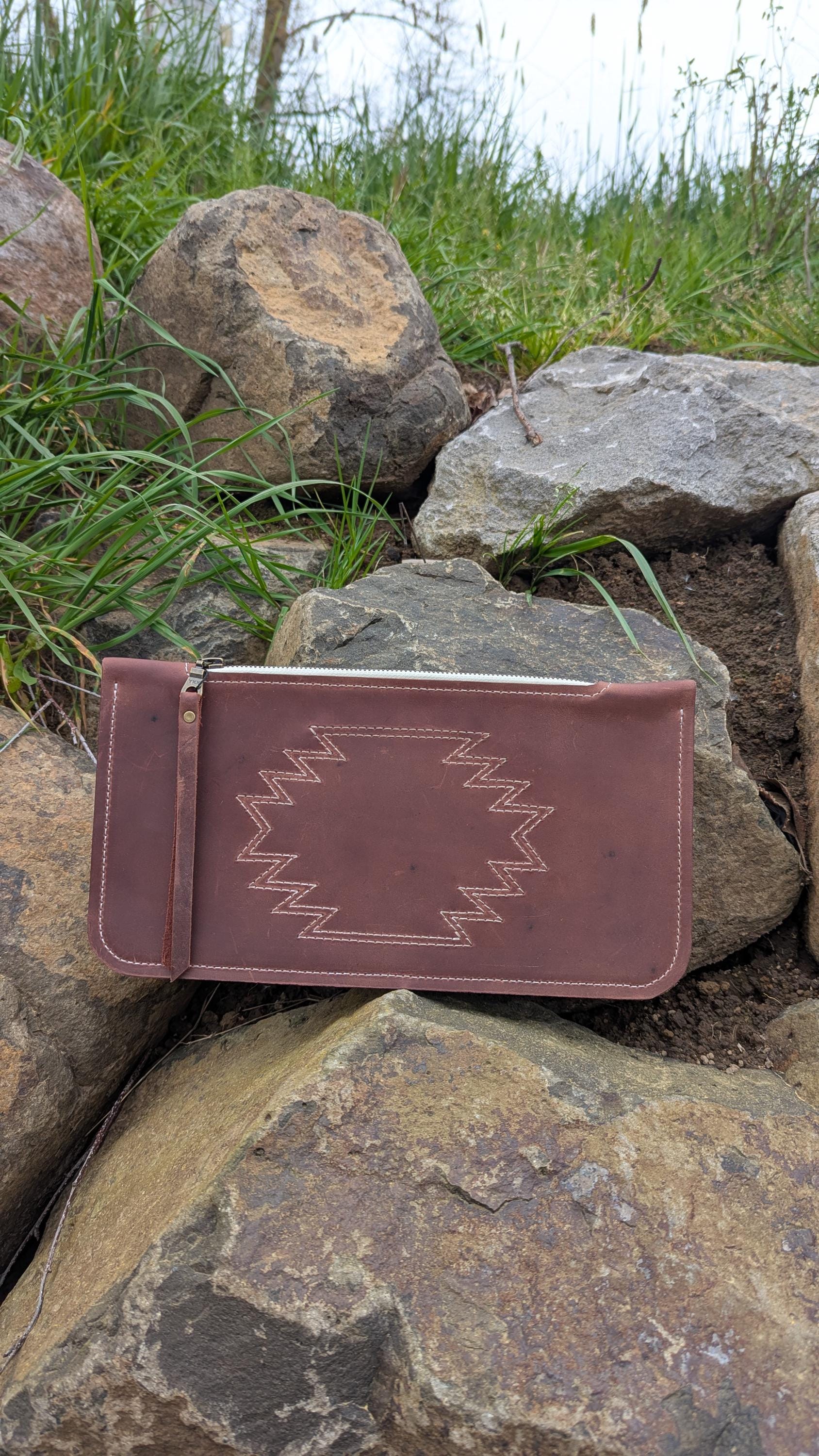 This beautiful western inspired stitched clutch is perfect for a night out with all of your essentials. This is the larger of the two clutch size options I have. It easily fits a cell phone, Chapstick, cards and money.