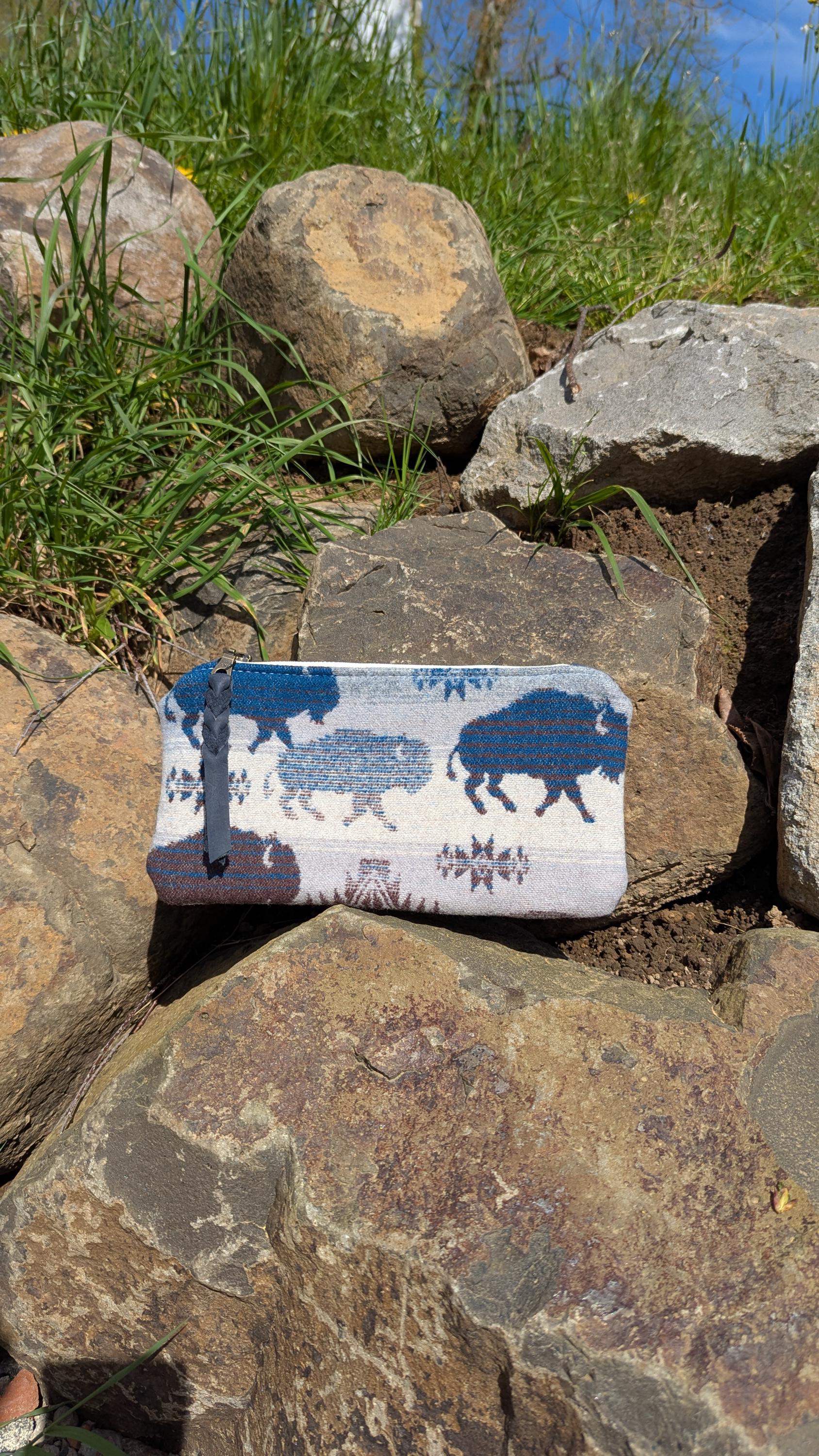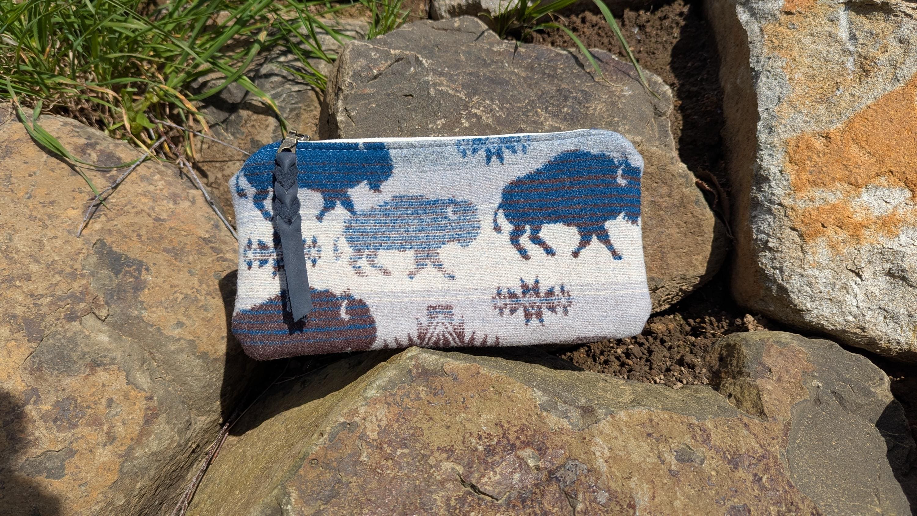 Clutch bag, handbag, made with Pendleton® wool, leather and wool purse, buffalo print